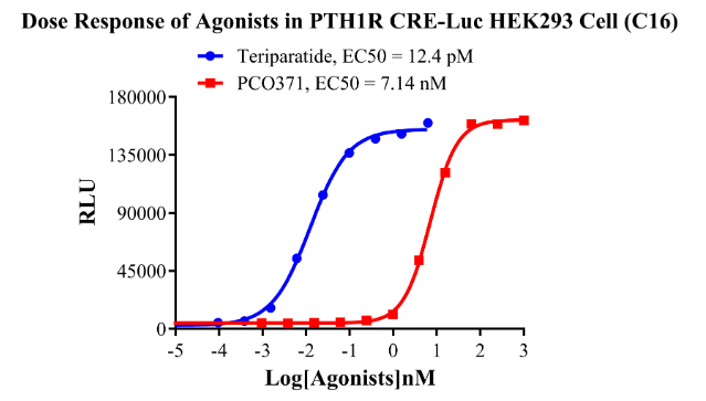 CHO、PTH1R CRE-Luc HEK293和PTH1R β-Arrestin CHO細胞篩選模型,產(chǎn)品驗證結(jié)果如下: