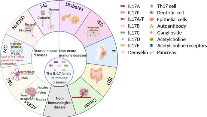 IL-17 細(xì)胞因子參與多種免疫調(diào)節(jié),對(duì)自身免疫性疾病及免疫相關(guān)疾?。ㄈ缍喟l(fā)性硬化癥、視神經(jīng)脊髓炎譜系疾病、重癥肌無(wú)力、吉蘭-巴雷綜合征和急性播散性腦脊髓炎)以及非神經(jīng)免疫性疾病中的炎癥和病理過(guò)程產(chǎn)生影響。