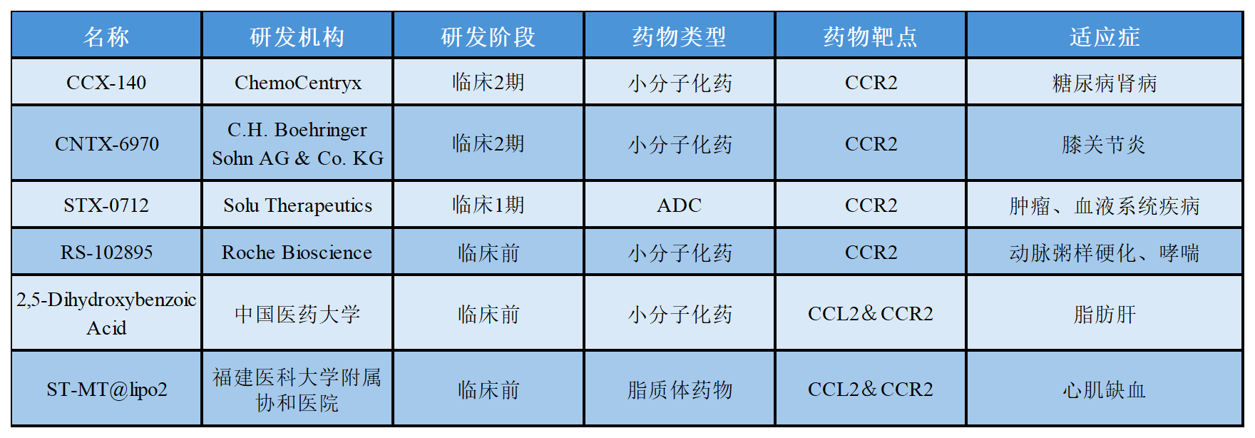 關于CCL2-CCR2在研的部分藥物進展如下表所示: