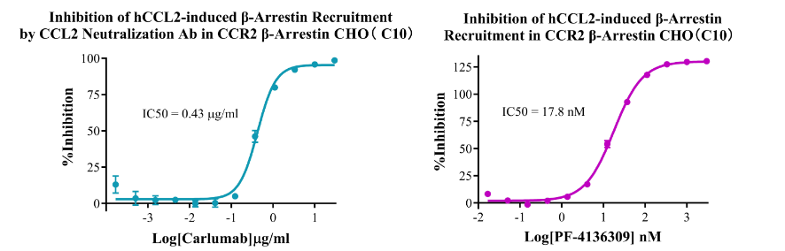 為助力CCR2靶點藥物研發(fā),南京科佰開發(fā)了CCR2/β-Arrestin/CHO、CCR2/CHO、CCR2/Gα15/CHO、CCR2/Gα16/HEK293細胞篩選模型,產品驗證結果如下: