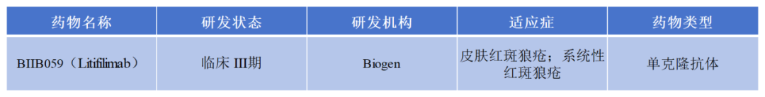 目前,全球關(guān)于BDCA-2這個靶點的在研管線并沒有很多,進展最快的是渤健生物開發(fā)的BDCA-2單抗BIIB059(Litifilimab),通過抑制BDCA-2,減少IFN-I等炎性細(xì)胞因子的產(chǎn)生,從而達到治療紅斑狼瘡的目的。
