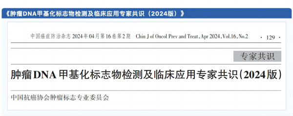 2024年4月,《腫瘤DNA甲基化標(biāo)志物檢測(cè)及臨床應(yīng)用專家共識(shí)》于中國(guó)癌癥防治雜志重磅發(fā)布。