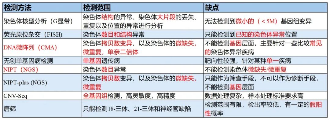 Table 1. 常見染色體檢測方法的比較