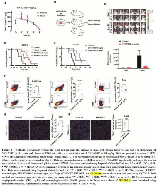 SYHA1813對免疫活性小鼠神經膠質瘤GL261-luc模型的抗腫瘤作用
